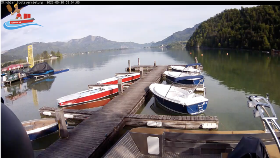 Die Webcam befindet sich in der Strobler Bootsvermietung Strobl am Wolfgangsee. www.eisboot.at